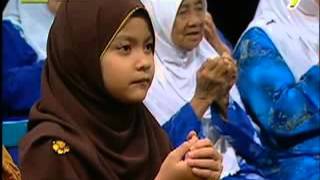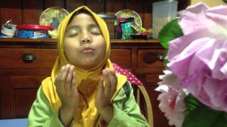 Aishah Dini is reciting a du'a. She is 6 years old. "As we welcome to the bright day We have come to remember How lucky we have friends to make us happy A family keep us safe Teachers help...